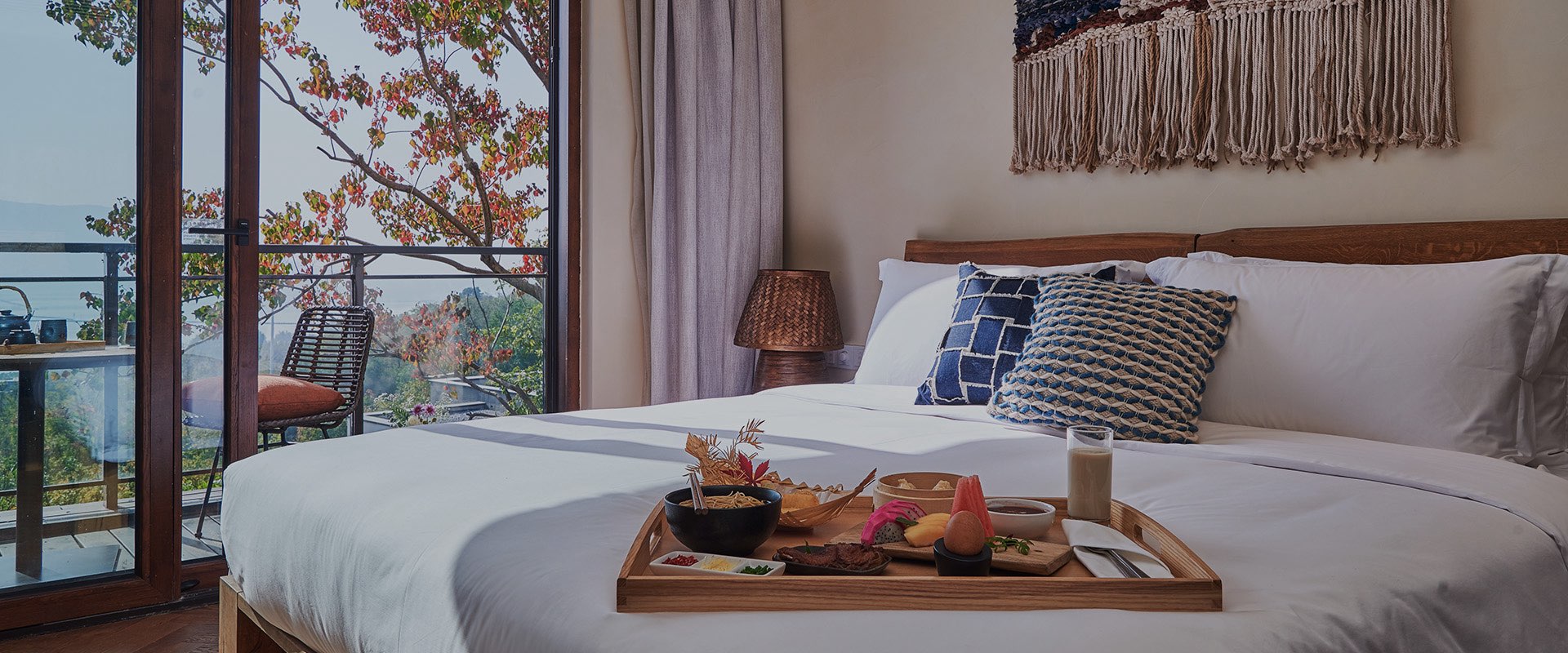 山涧潺潺,竹海摇曳,湖水粼粼,都拥有富有特色的主题客房,入住其中,被大自然拥抱。室外是让人赞叹的壮阔美景,室内是令人怦然心动的精巧设计。